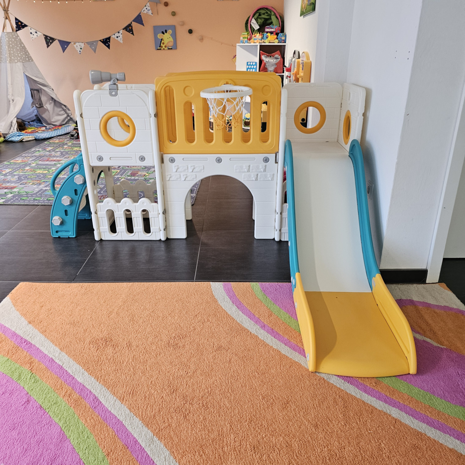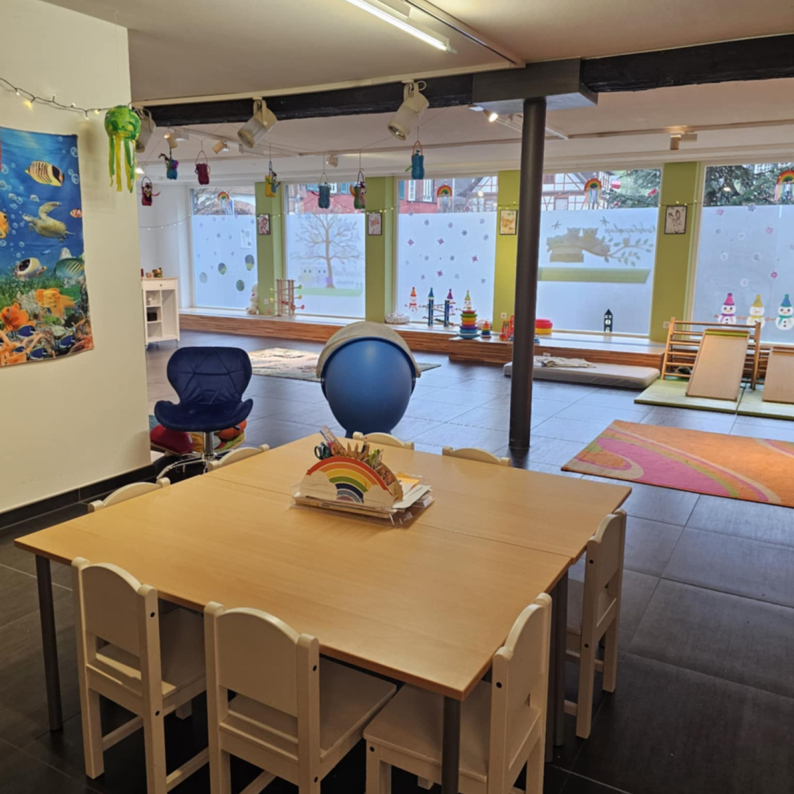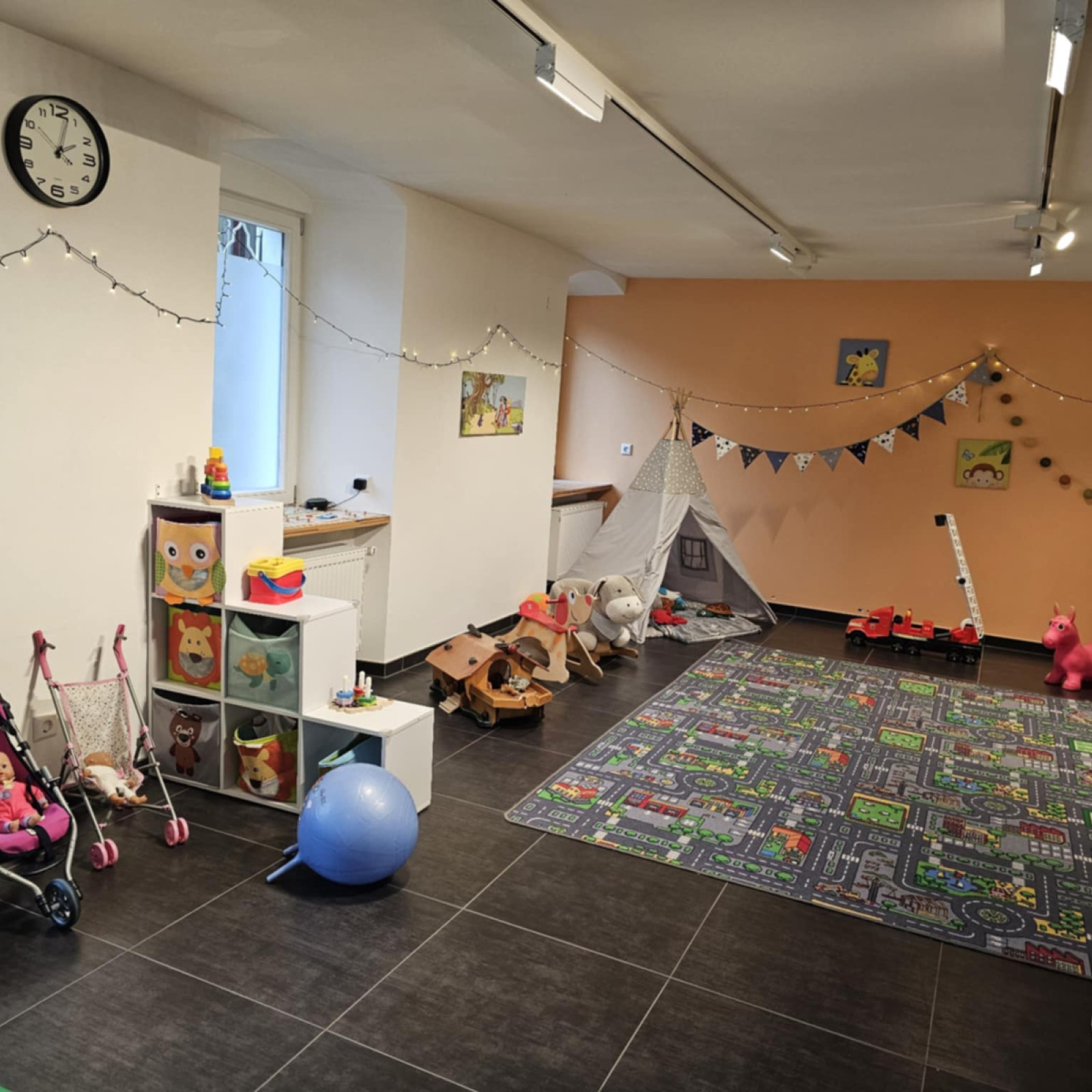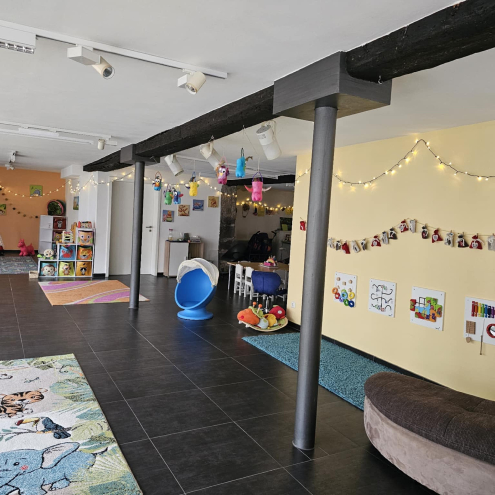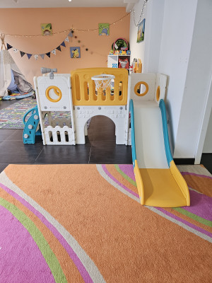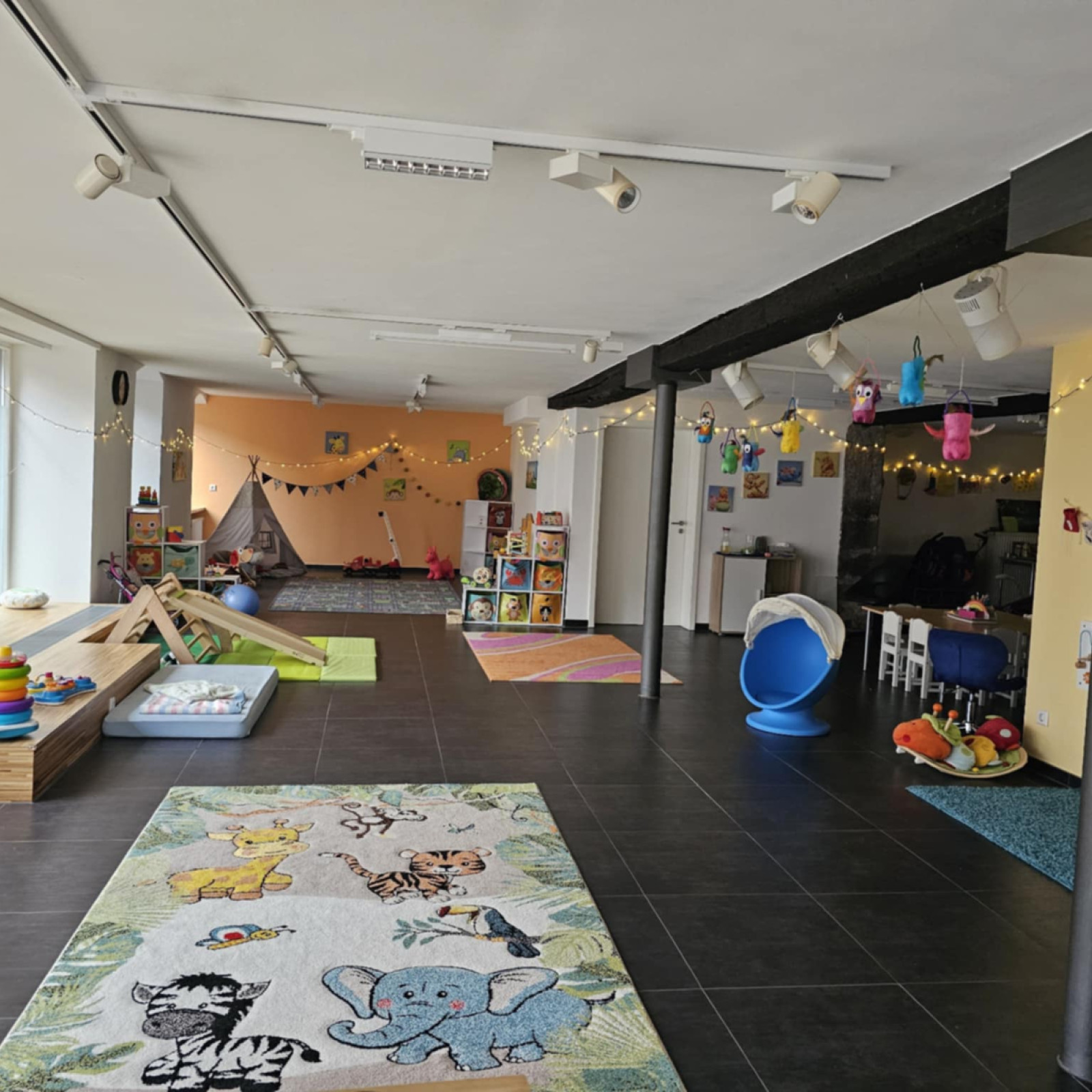 Wir haben uns auf 170qm eingerichtet und verschiedene Spielbereiche geschaffen. So können wir den unterschiedlichen Vorlieben aller Kinder gerecht werden. Seperat haben wir ein Ruheraum / (Vor-)Lesezimmer, welches auch als Schlafraum genutzt wird.